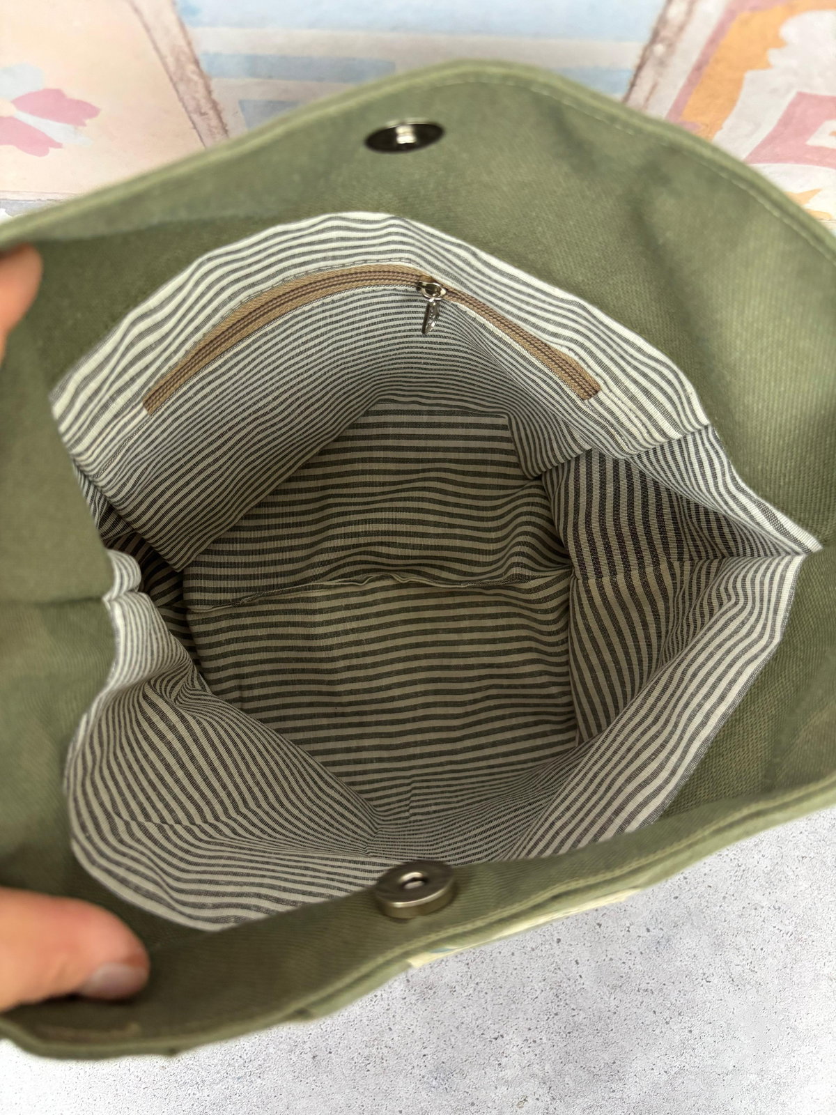 Tené en cuenta que al ser de tela no es rígida y se acomoda mejor lo que quieras meter en la cartera.